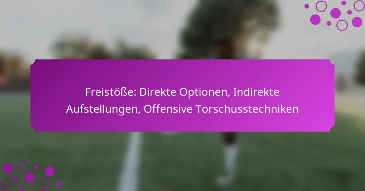 Freistöße sind ein entscheidender Aspekt des Fußballs und bieten den Teams einzigartige Möglichkeiten, Tore zu erzielen. Direkte Freistöße ermöglichen einen sofortigen Schuss auf das Tor, während indirekte Freistöße die Berührung eines Mitspielers erfordern, bevor ein Tor erzielt werden kann. Das Beherrschen offensiver Torschusstechniken und das Verständnis der Feinheiten beider Arten von Freistößen können die Effektivität eines Teams bei der Nutzung dieser Standardsituationen erheblich steigern.